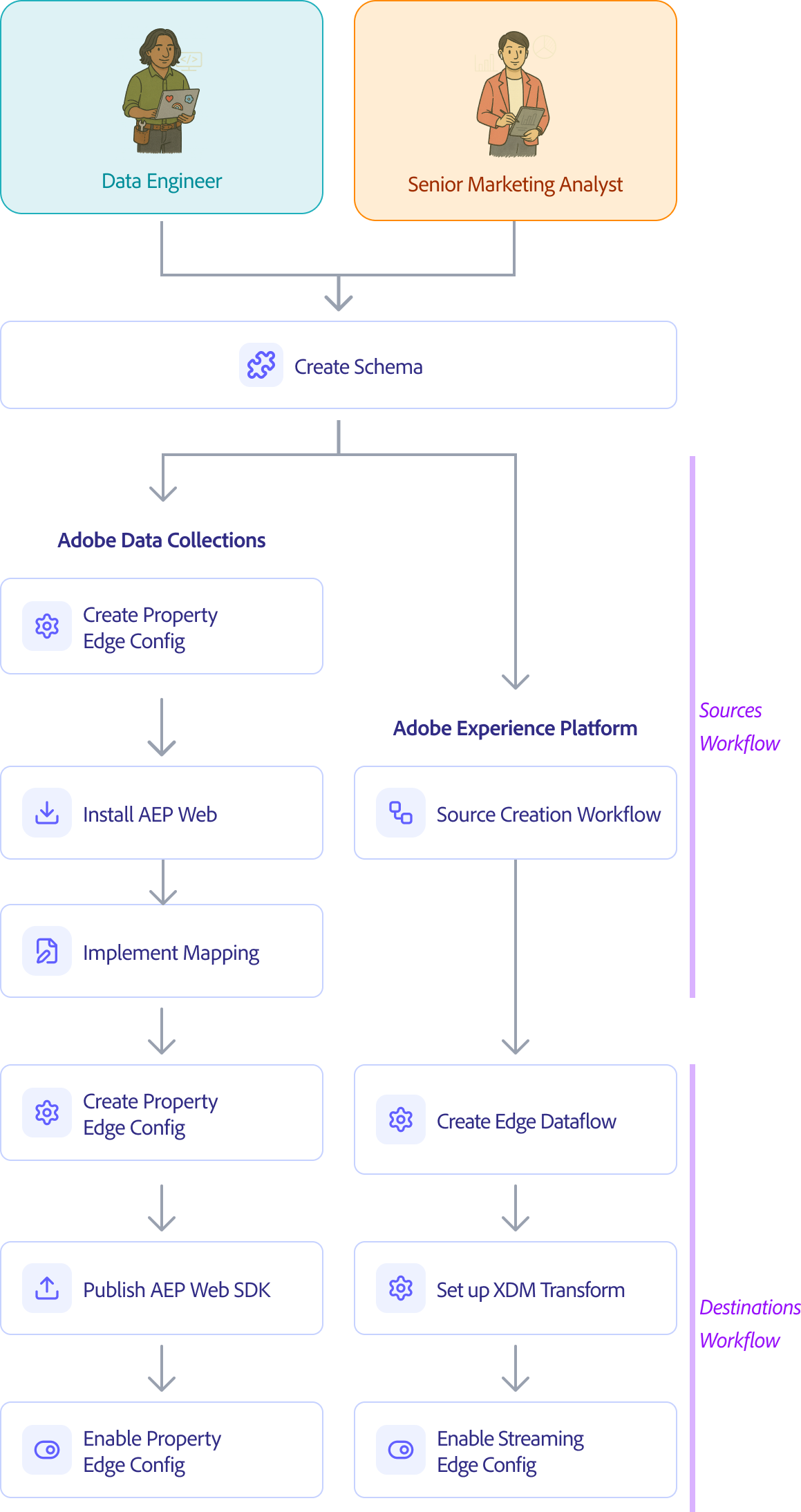 After I completed the GA of Launch Tag Management and improving rule-governance workflows, customer needs quickly expanded beyond client-side tagging. As Adobe Experience Platform (AEP) matured, organizations began ingesting more behavioral data from web, mobile, and server environments, but provisioning paths were spread across multiple tools.