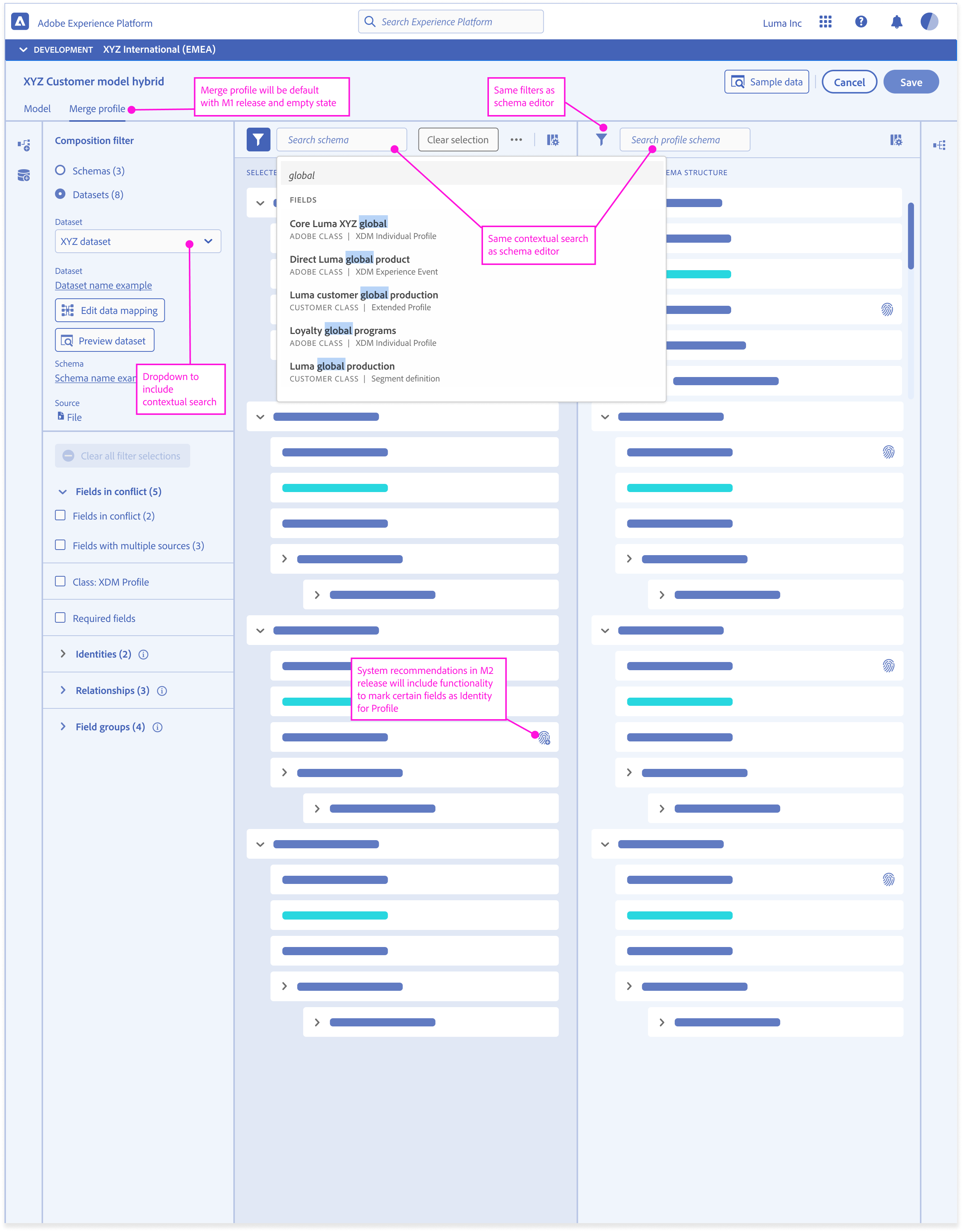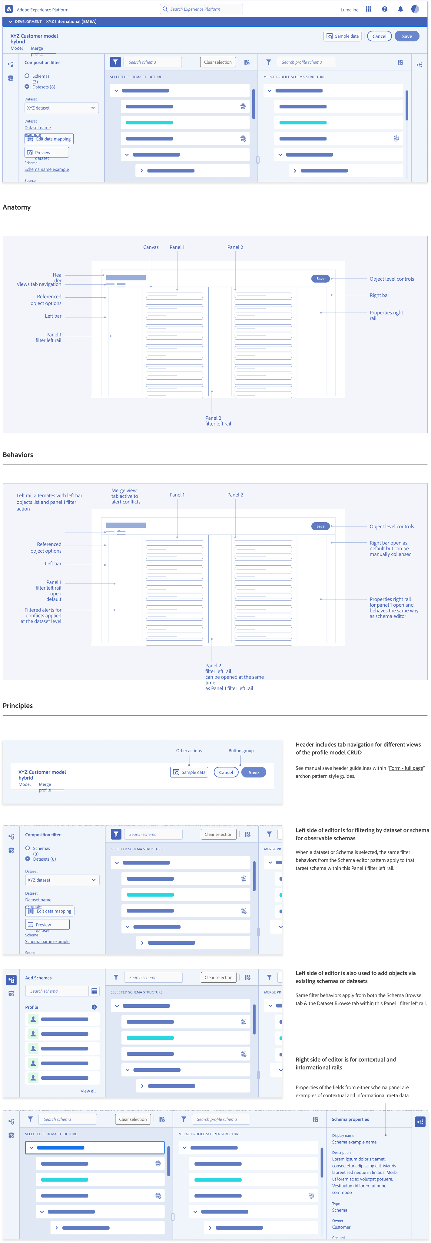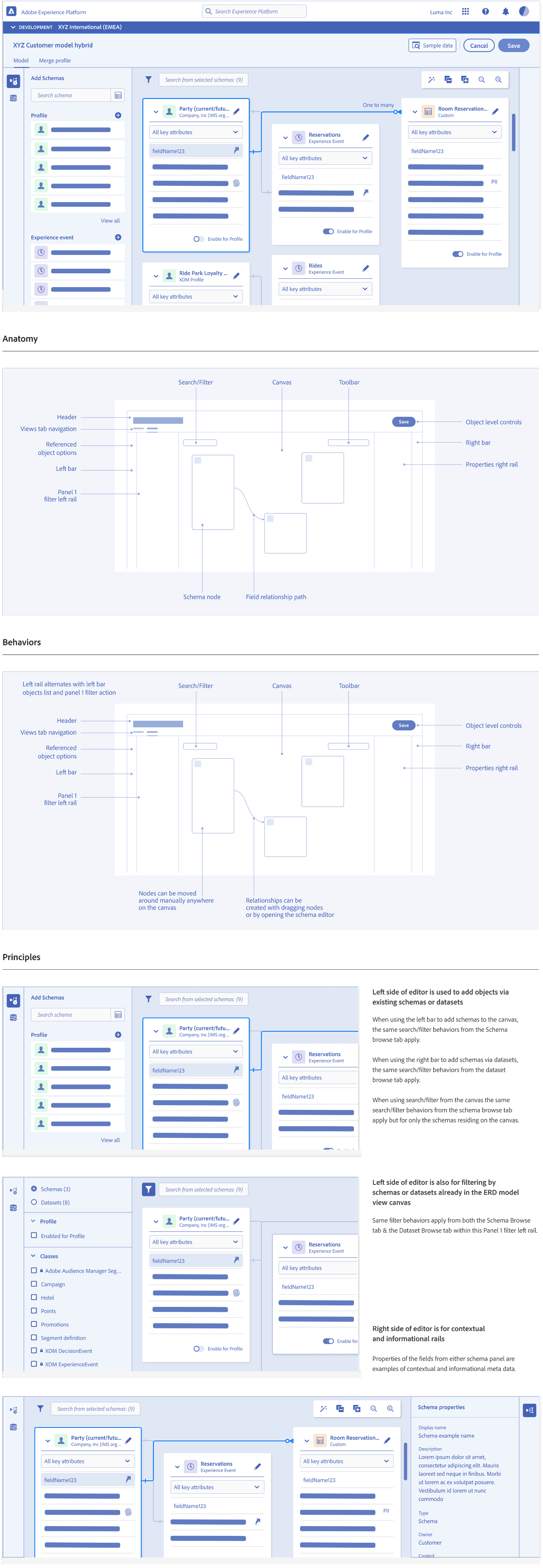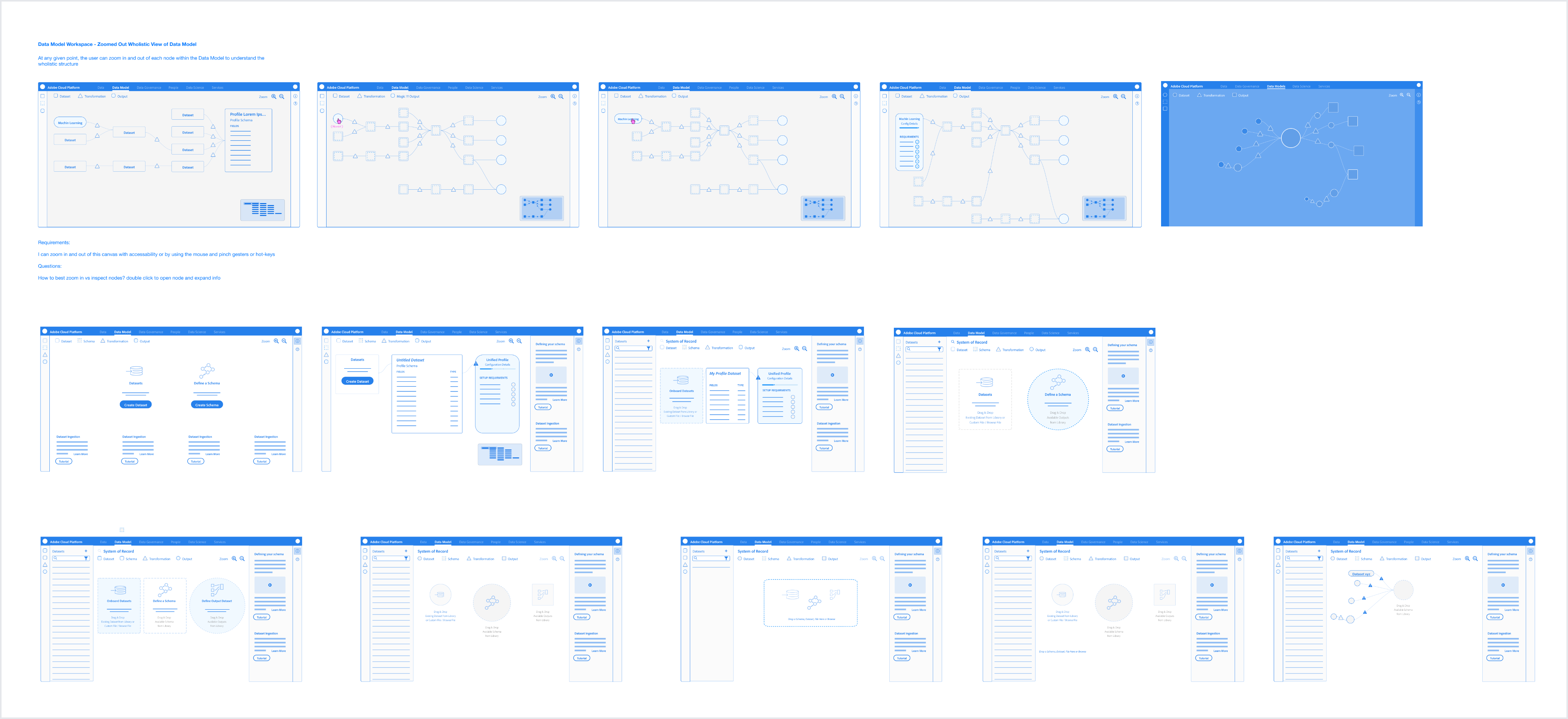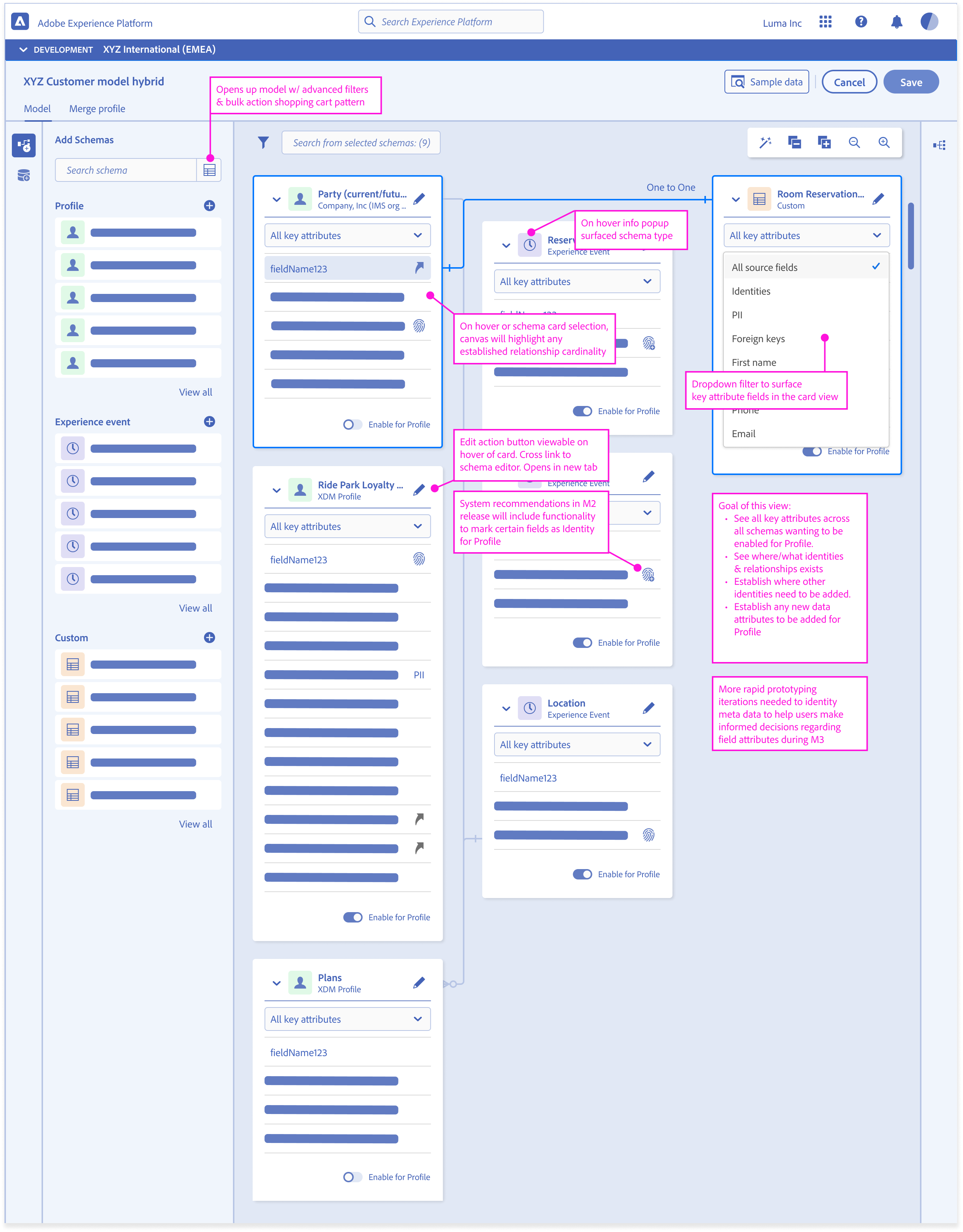 Primary designer responsible for defining modeling workflows, object-level metadata, quality scoring, validation mechanics, and visualization patterns. This work occurred after GA for core ingestion and schema features and ran in parallel with Query Services and early data modeling initiatives. It became the interpretability layer that tied together object structure, mapped data, and the emerging profile model.