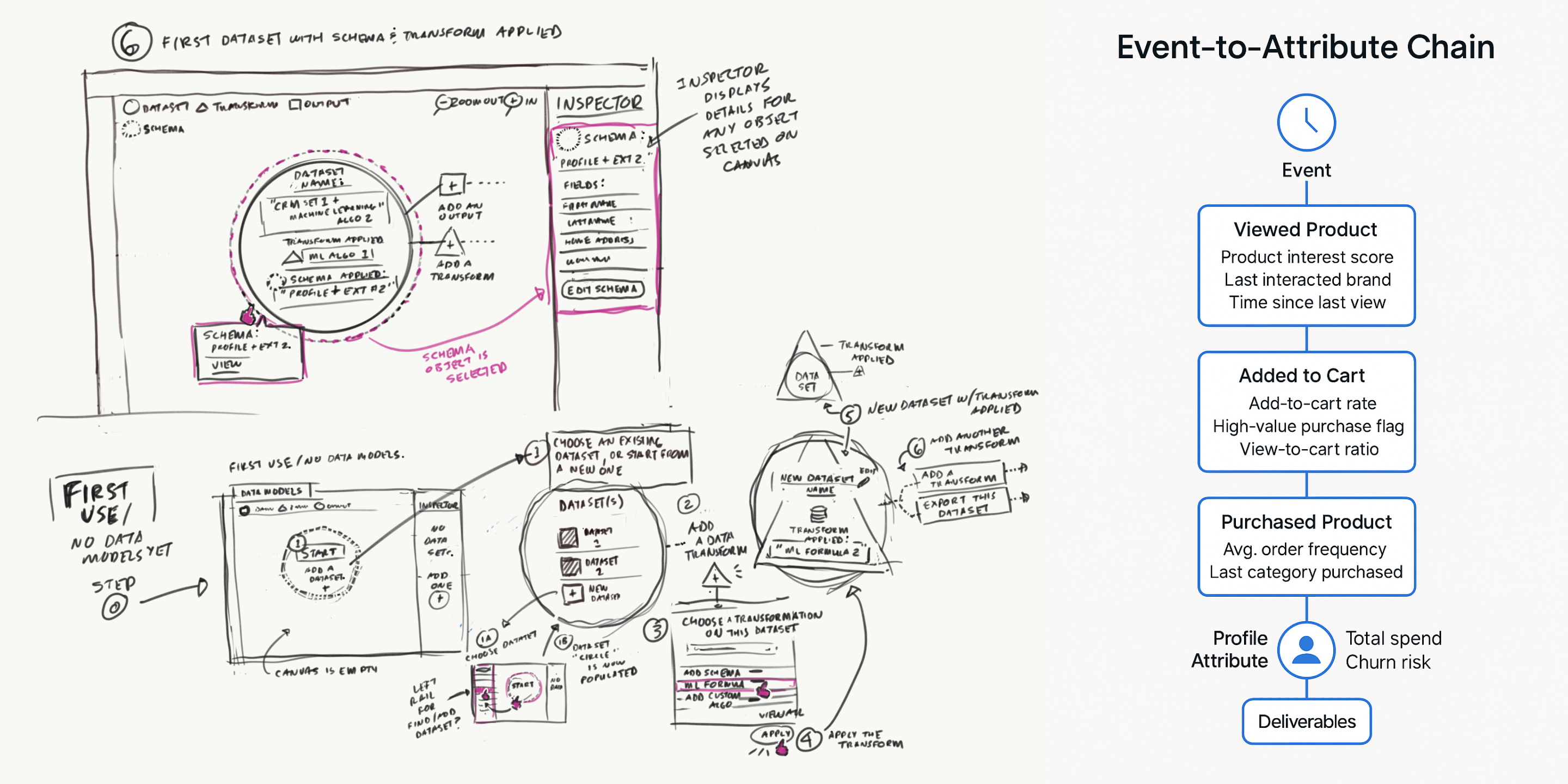 Internal ML and data engineering teams needed to understand why profiles were stitched the way they were, how attributes were generated, and which behavioral events contributed to downstream predictive models. But profile formation logic was opaque, making it difficult to debug model features, evaluate attribute drift, or diagnose segmentation inconsistencies.